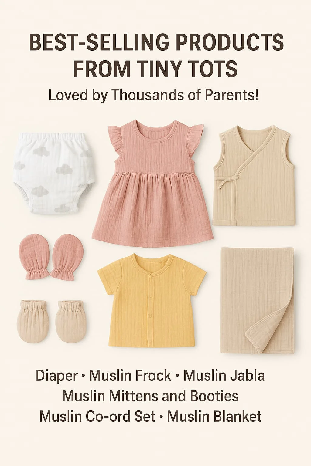 At Tiny Tots, we understand that when it comes to your baby, comfort and safety come first. That’s why our collection of muslin essentials and everyday baby products have become top choices for parents all over India.