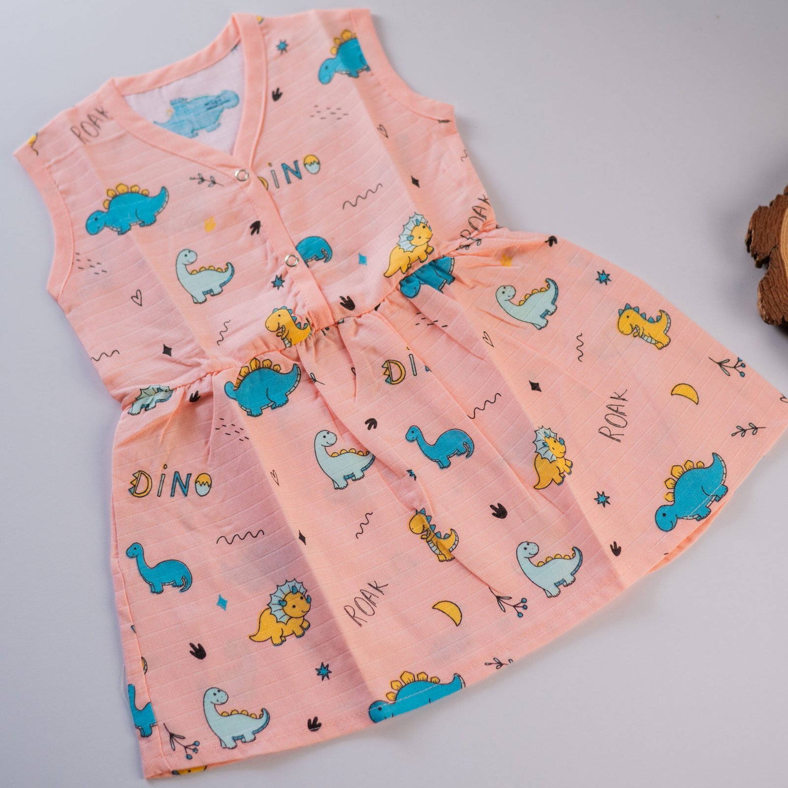 Crafted from soft, breathable muslin, this sleeveless frock adds a pop of color and charm—perfect for keeping cool and stylish all day.