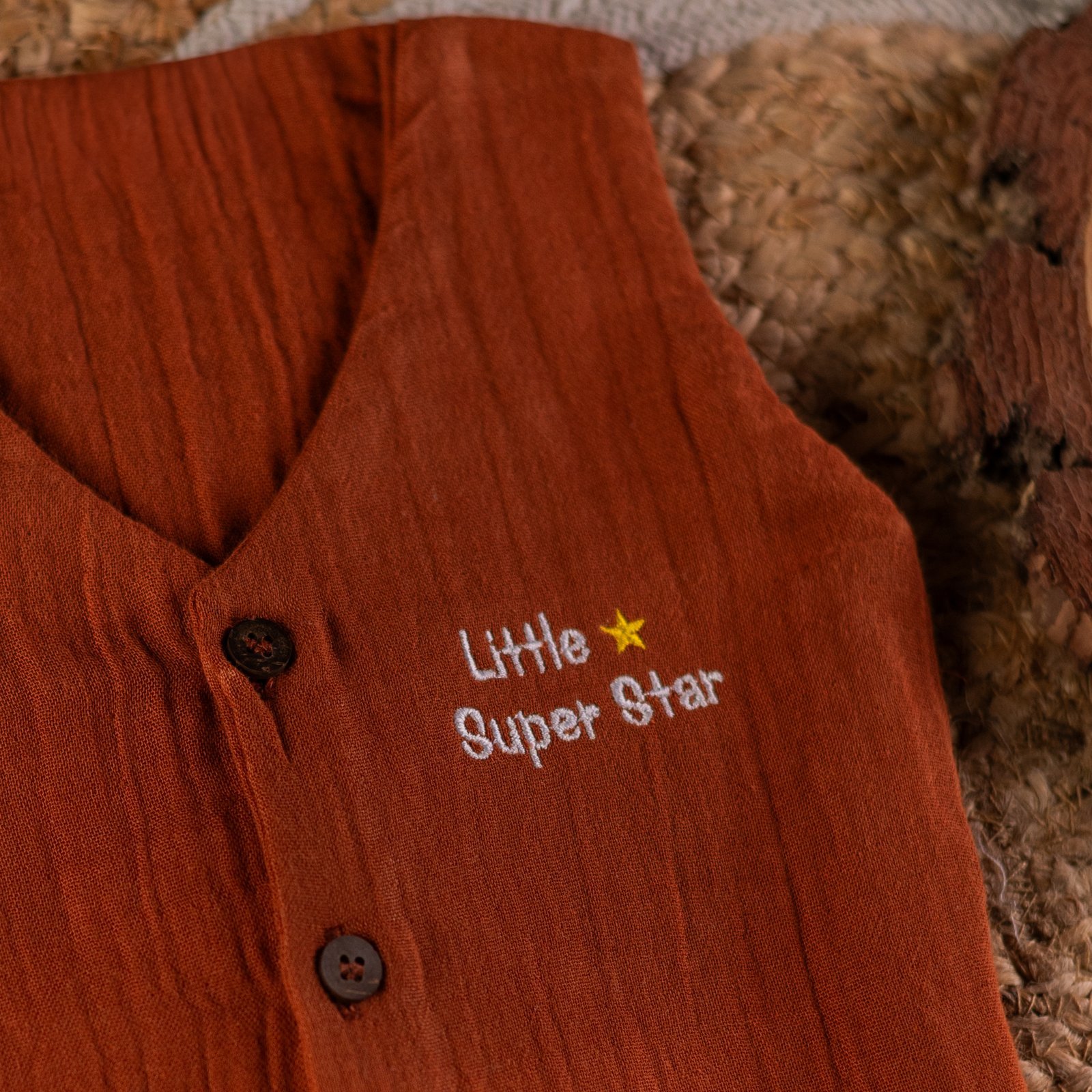 The muslin vest will be super soft and breathable on the new baby’s skin!