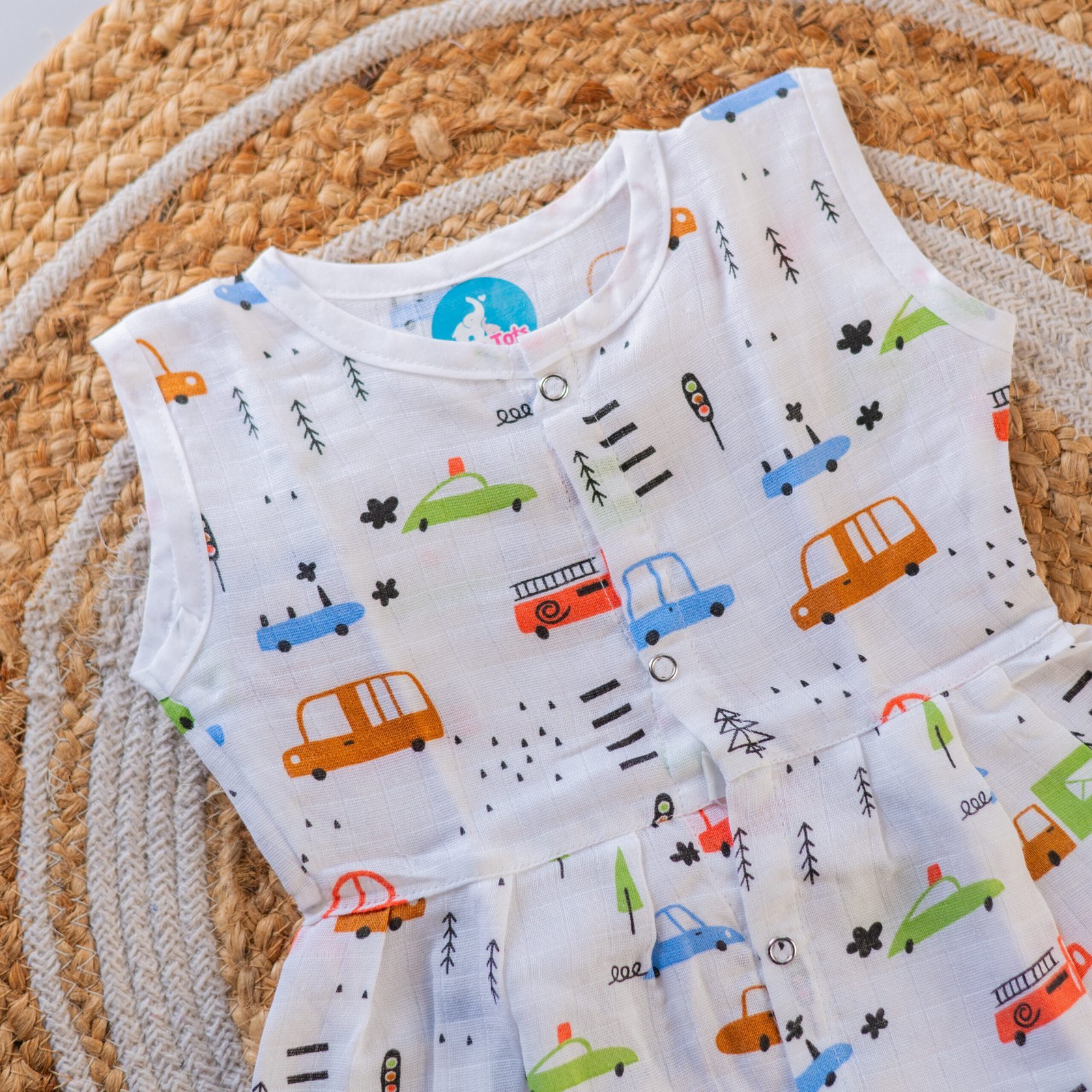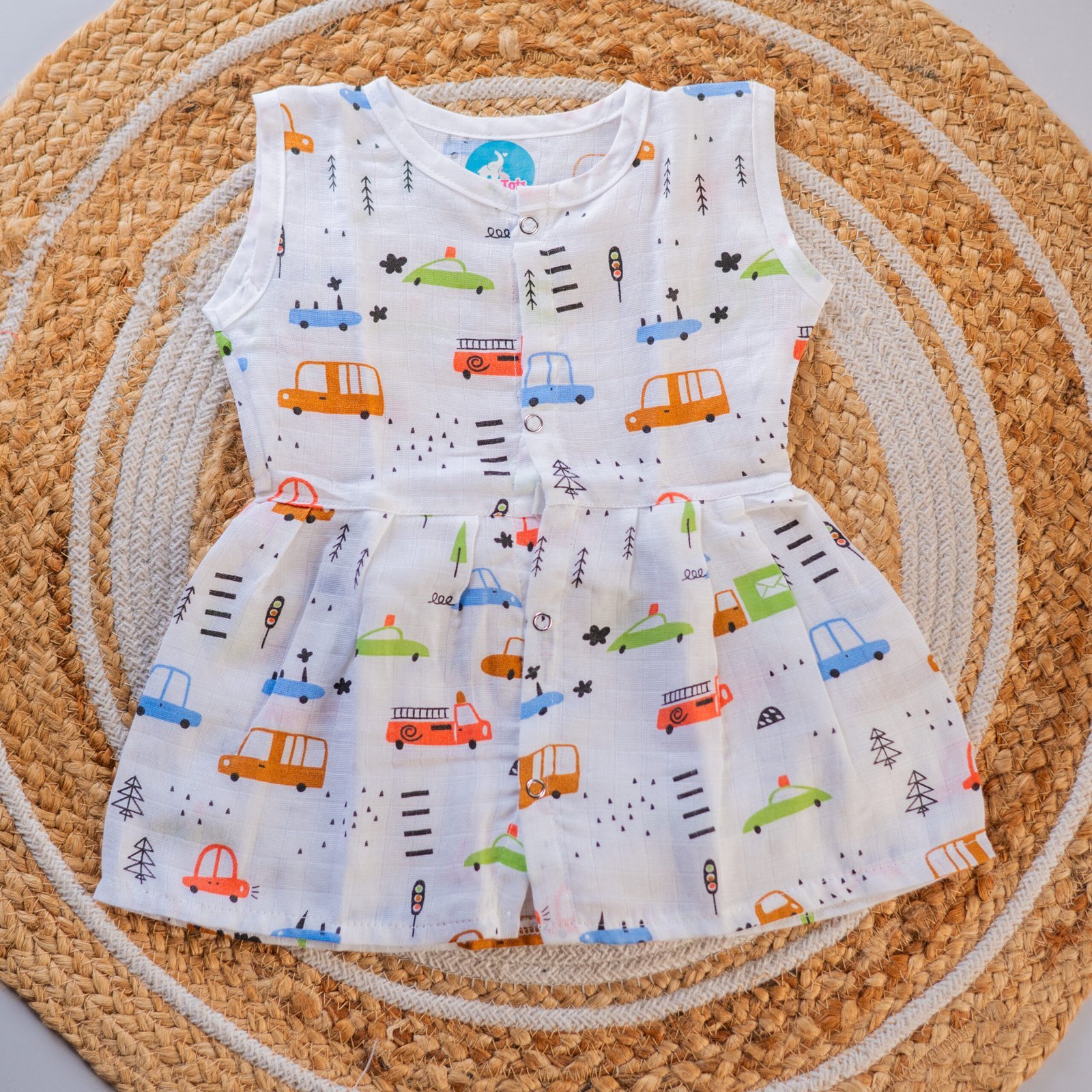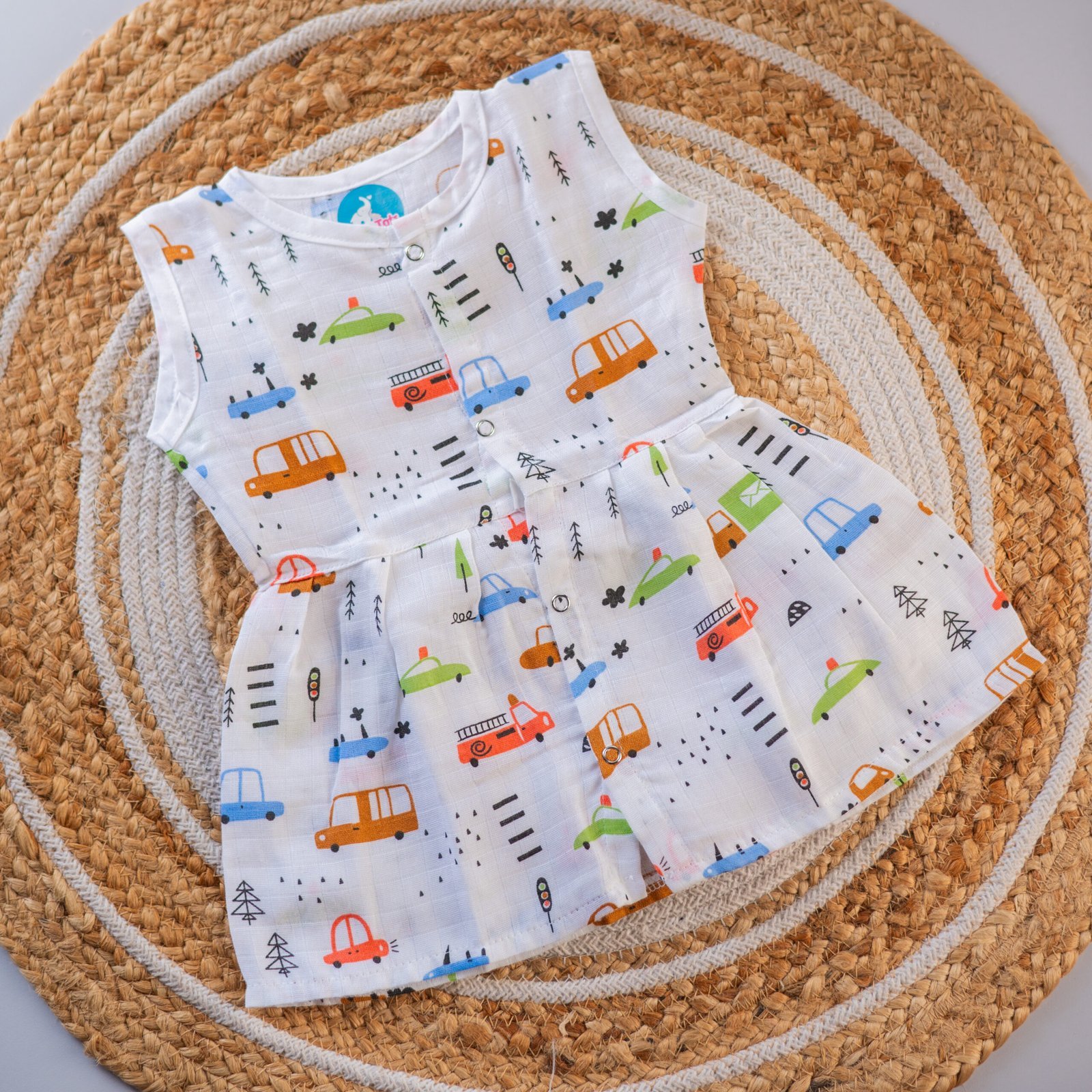 Keep it cool, simple, and stylish with our Muslin Dailywear Sleeveless Frock — thoughtfully designed for everyday comfort. Made from 100% breathable muslin cotton, this lightweight frock is perfect for warm days, offering a soft and airy fit that keeps your little one comfortable all day long.