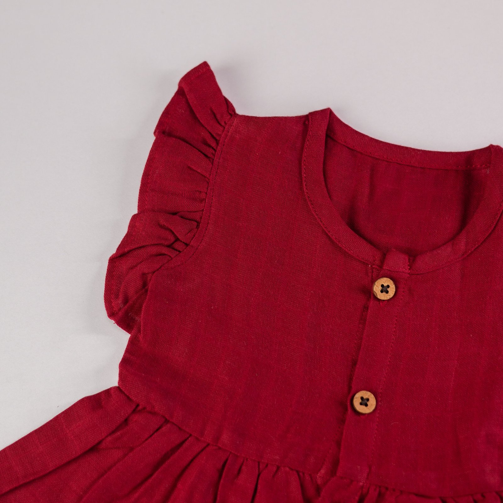 Maroon Muslin Baby Frock with Wooden Buttons – Soft & Stylish
