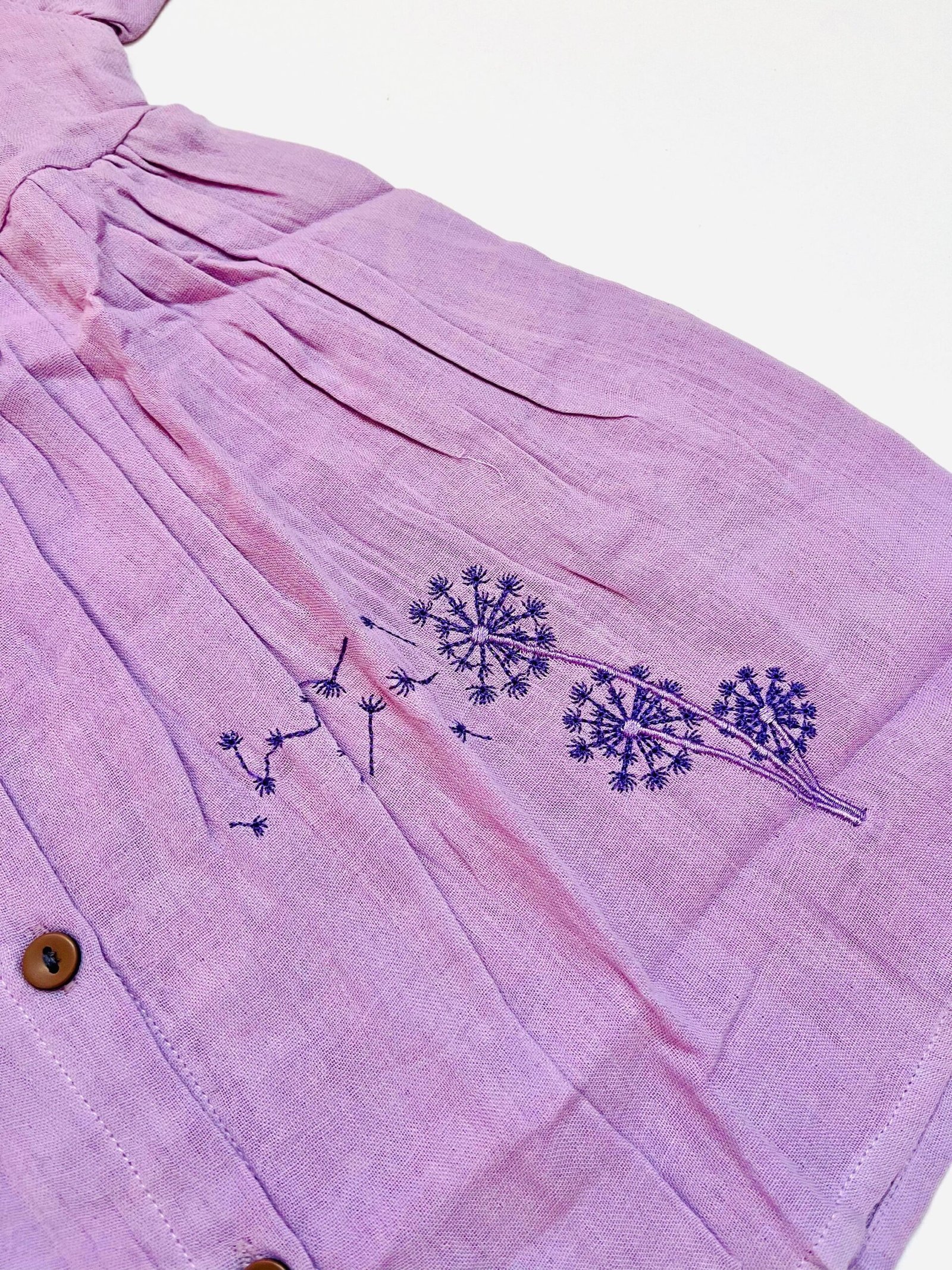 Muslin Front Button Sleeve Frock with Embroidery – Lilac