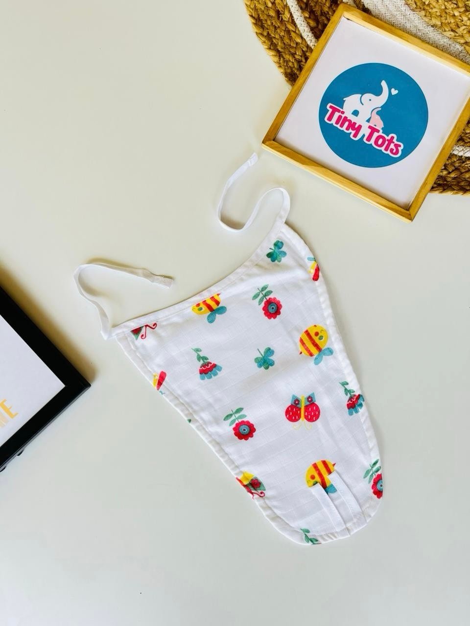 The lightweight and highly absorbent muslin fabric keeps your baby dry and cozy, making it ideal for daily wear. Its adjustable tie-knot closure ensures a snug yet comfortable fit, allowing your baby to move freely without any discomfort.