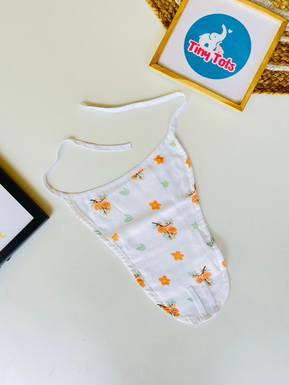 The lightweight and highly absorbent muslin fabric keeps your baby dry and cozy, making it ideal for daily wear. Its adjustable tie-knot closure ensures a snug yet comfortable fit, allowing your baby to move freely without any discomfort.