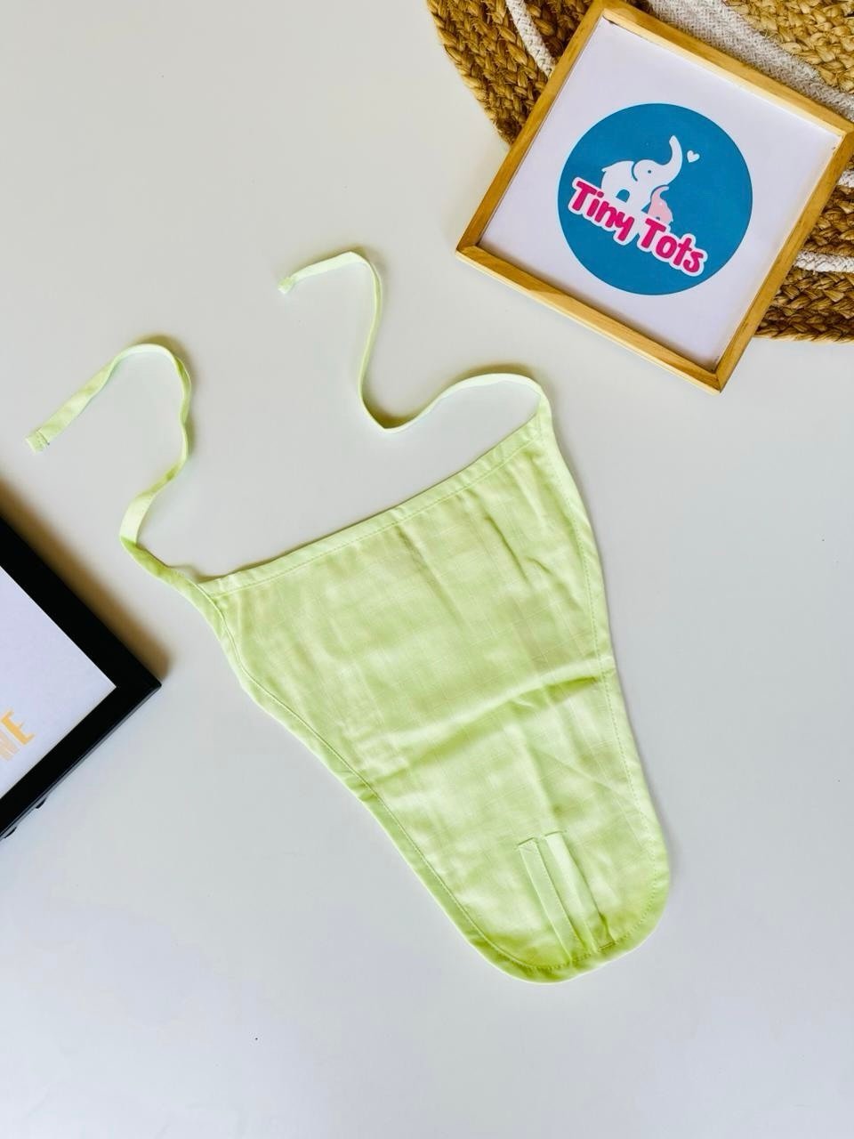 The lightweight and highly absorbent muslin fabric keeps your baby dry and cozy, making it ideal for daily wear. Its adjustable tie-knot closure ensures a snug yet comfortable fit, allowing your baby to move freely without any discomfort.