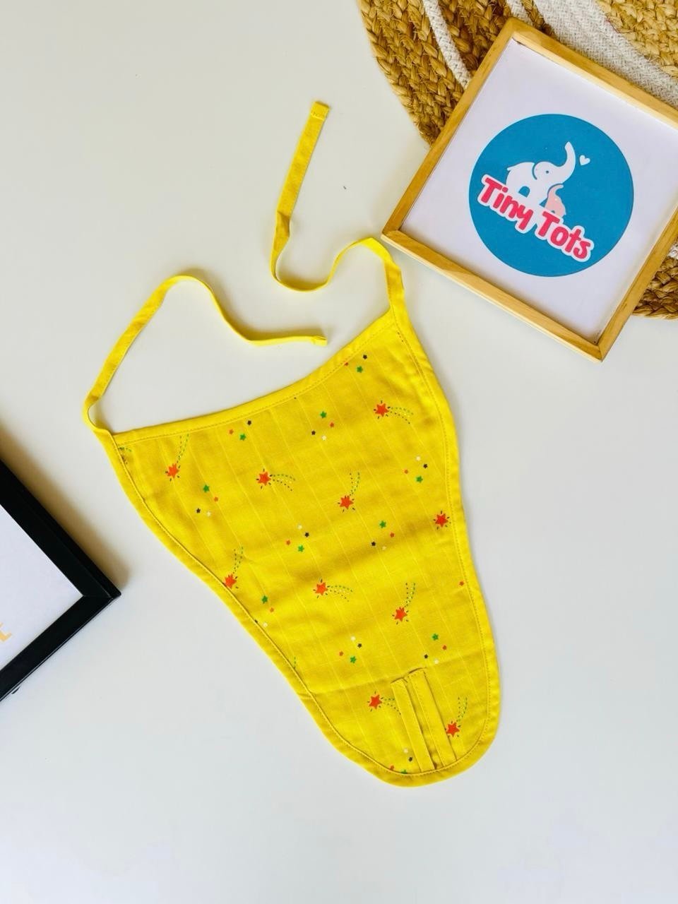 The lightweight and highly absorbent muslin fabric keeps your baby dry and cozy, making it ideal for daily wear. Its adjustable tie-knot closure ensures a snug yet comfortable fit, allowing your baby to move freely without any discomfort.