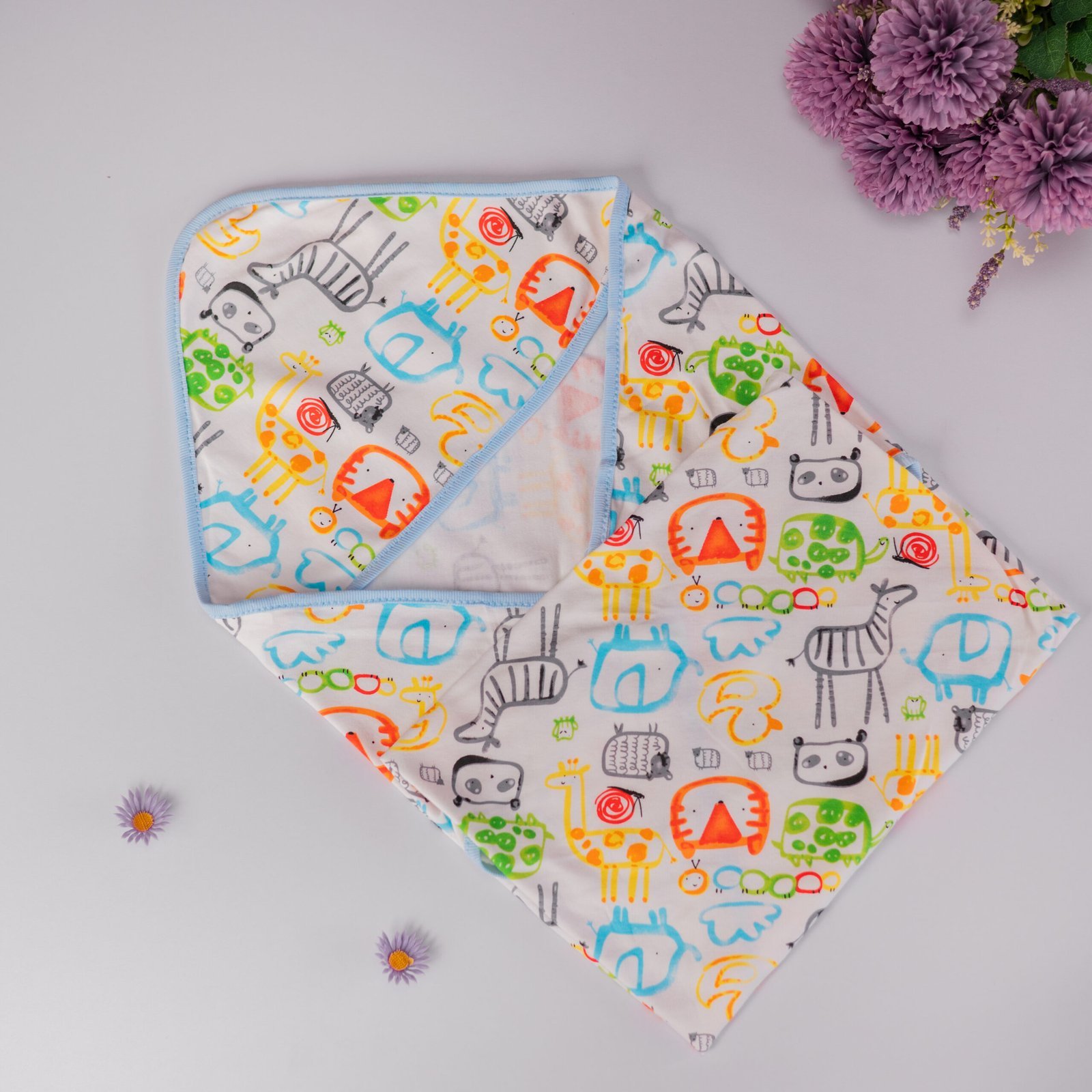 Newborn Receiving Blanket- Colourful Zoo