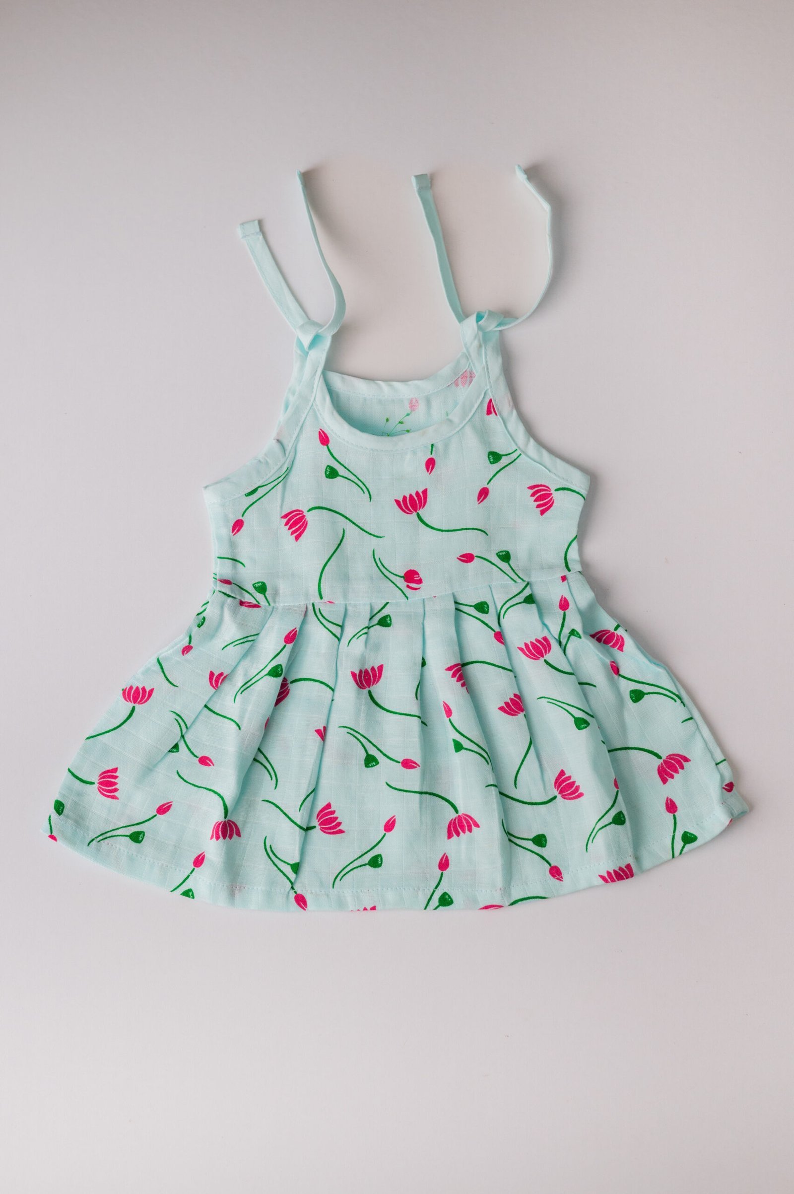 Dress your little one in adorable comfort with our organic muslin shoulder knot frocks,tailored for 0-3month – old baby girls