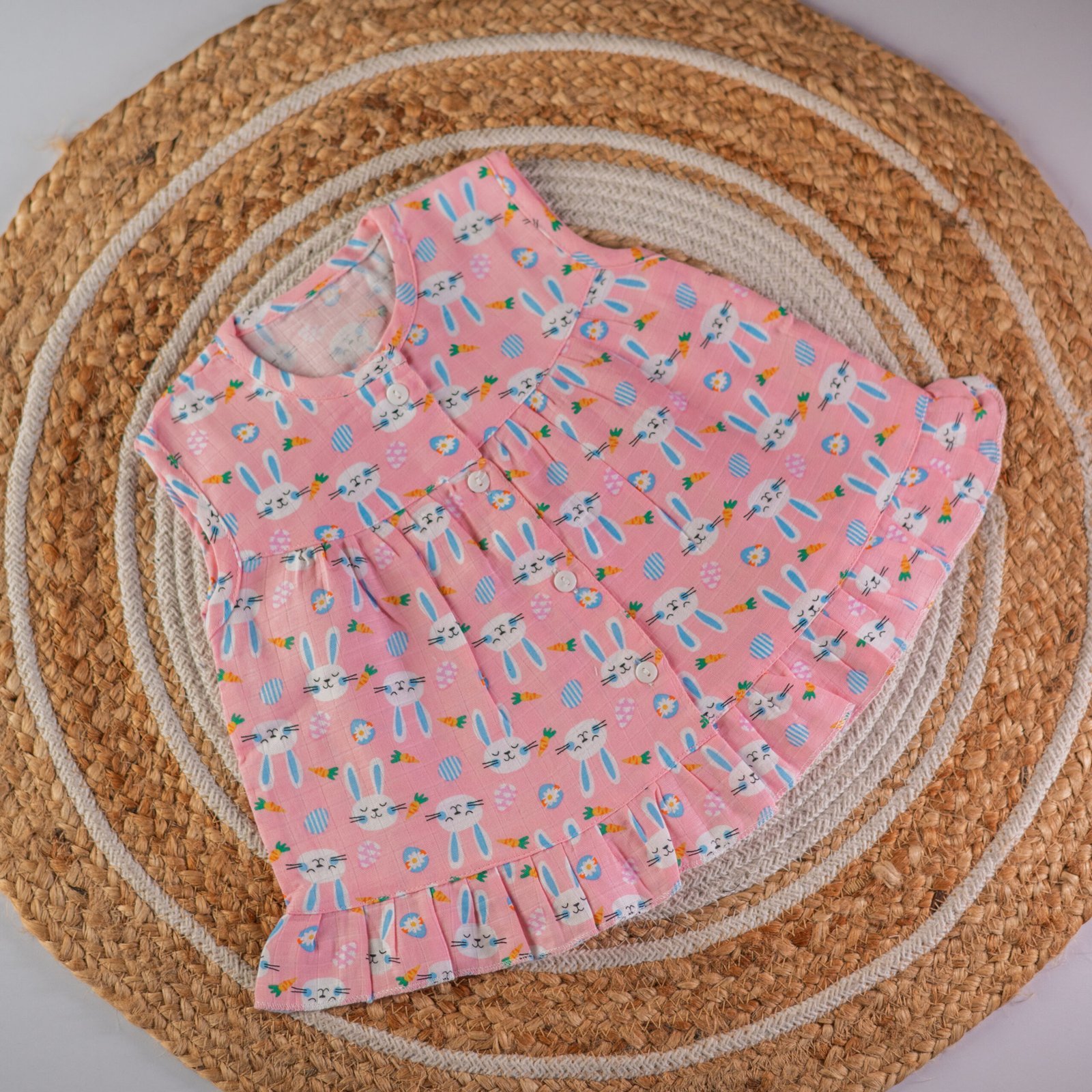 Dress your little one in comfort and charm with our Muslin Frill Frock, crafted from ultra-soft, breathable muslin cotton. Designed for all-day wear, this frock features delicate frill detailing that adds a touch of elegance and playfulness to every twirl.