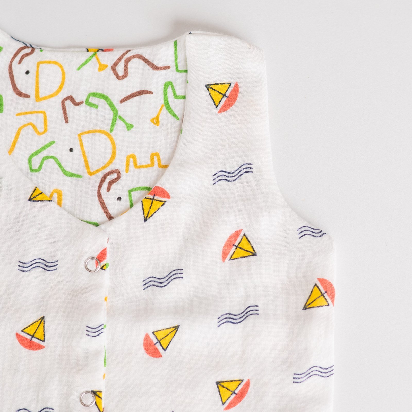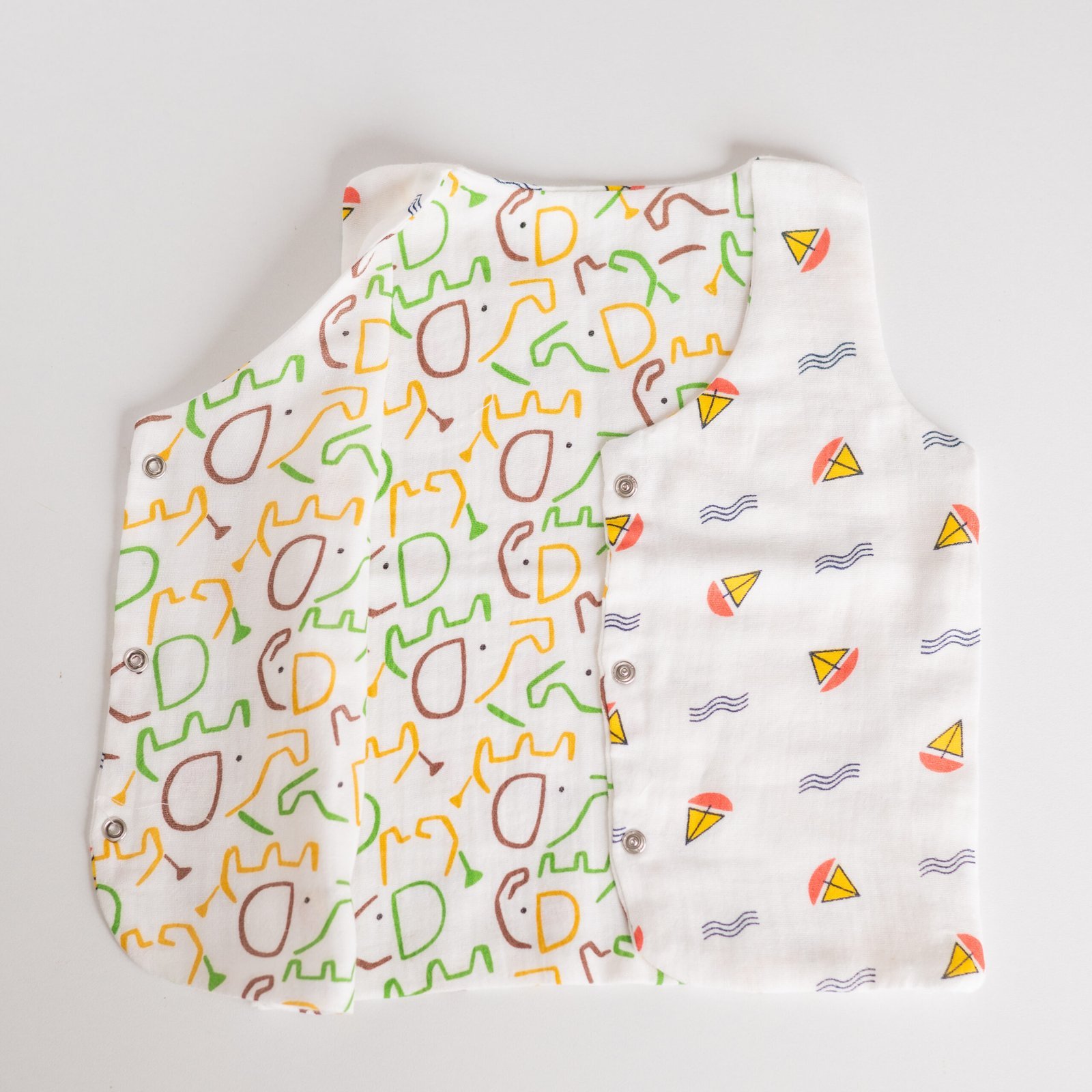 Reversible Muslin Baby Jabla — Boat / Elephant Print