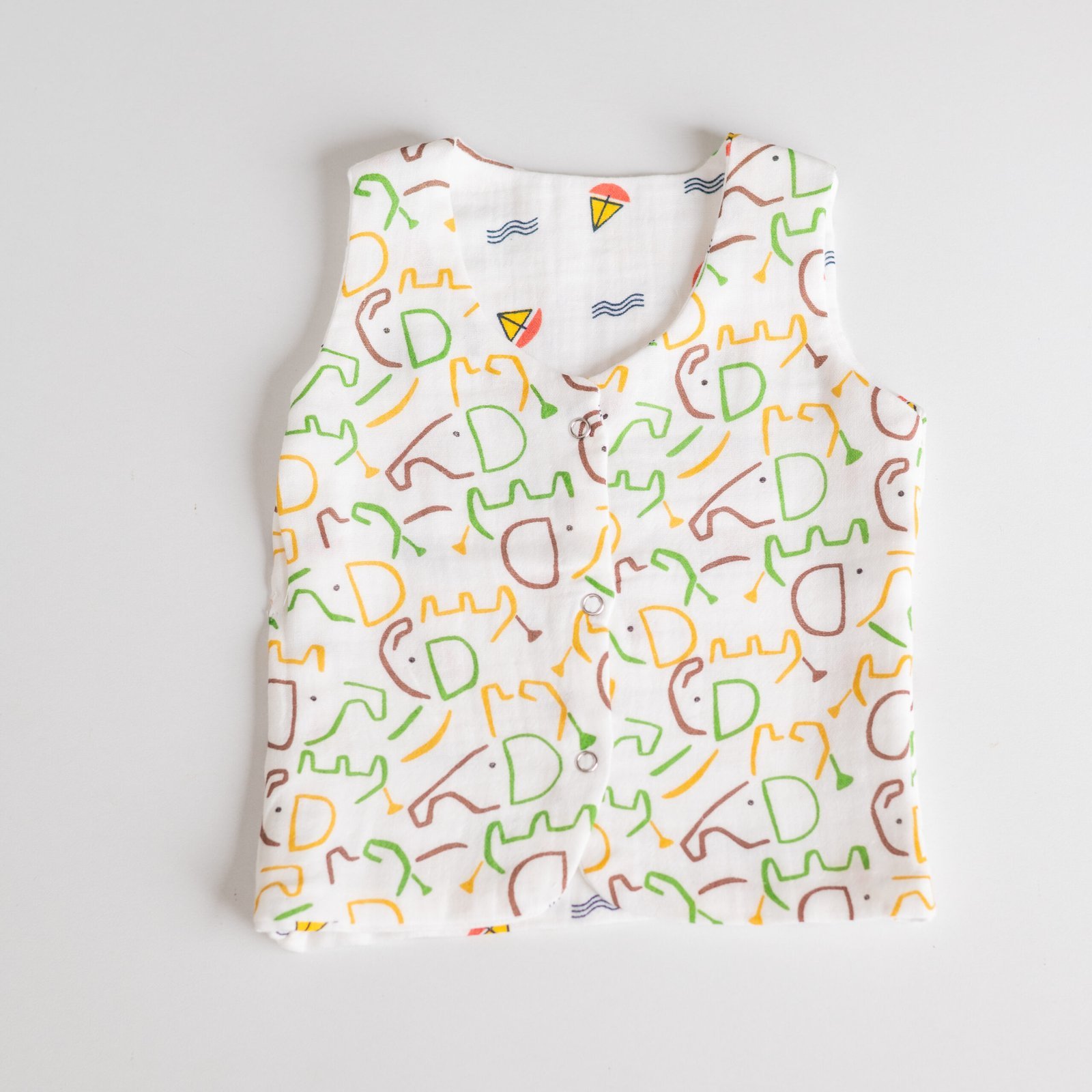 With a smart reversible design, you get two charming looks in one — Boat on one side and Elephant on the other. Thoughtfully crafted with nickel-free snap buttons for easy dressing, and seamless finishing for all-day comfort.