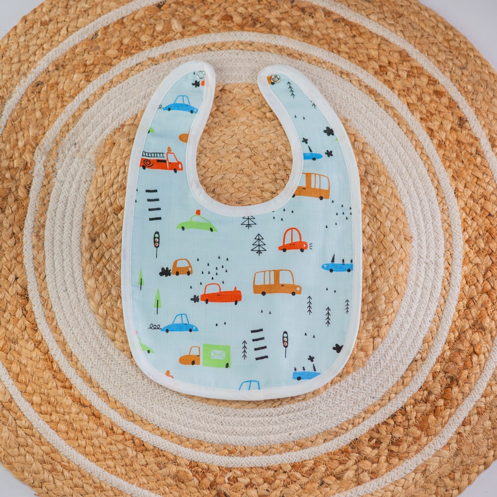 Stylish and functional, this bib is an essential in every diaper bag or nursery drawer.